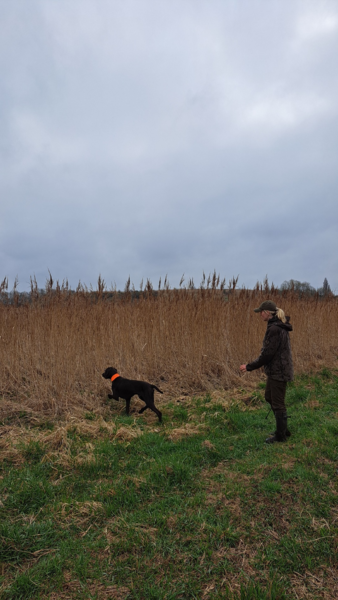 ans Gewässer nach Utarp. Erster Gedanke: Wie soll ich den Hund denn durch diese Schilfwand schicken?! Das Gewässer hatte jedoch auf der uns abgewandten Seite auch eine offene Wasserfläche vo